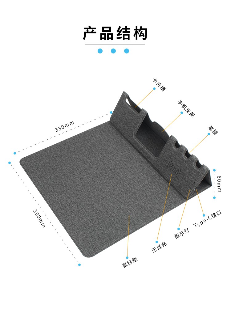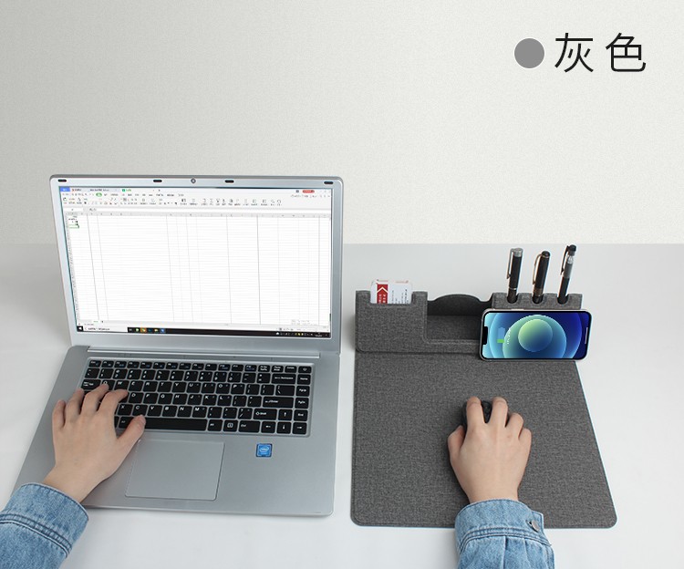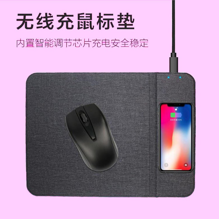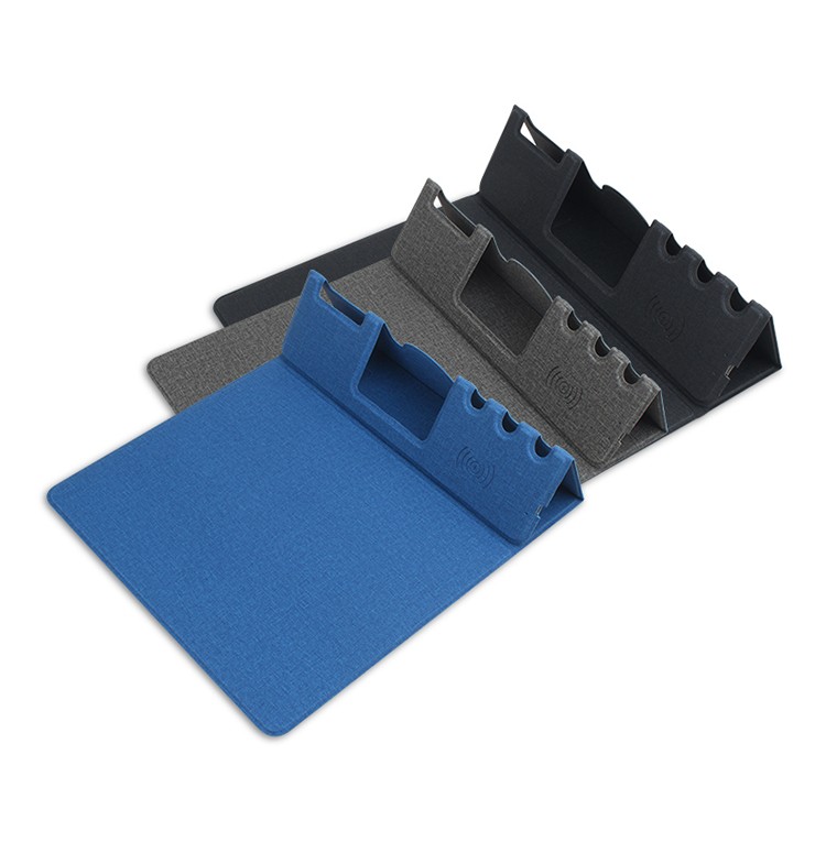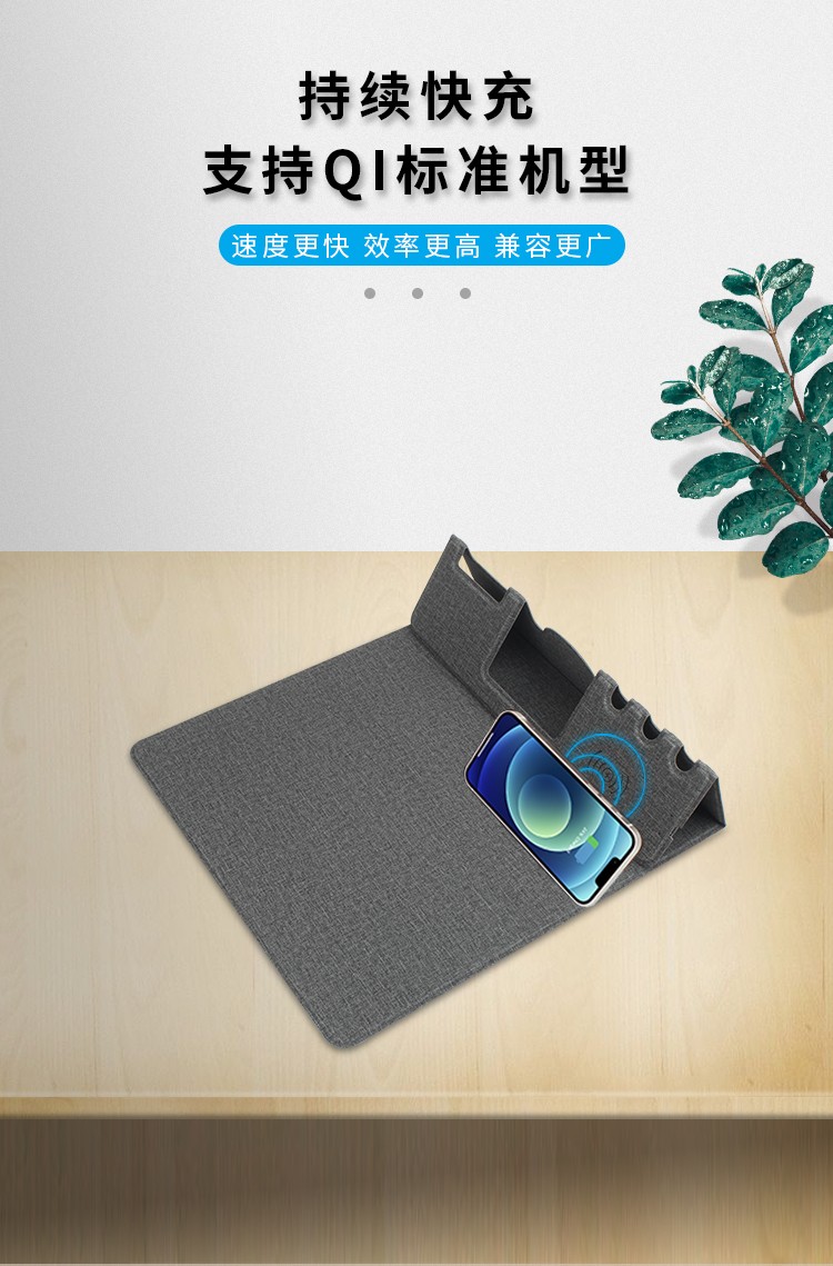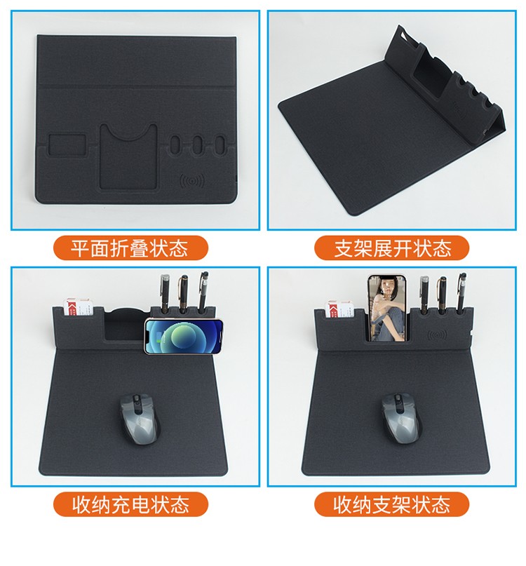 折疊支架款無線充電鼠標墊可定制 布紋超薄無線充鼠標墊可印LOGO