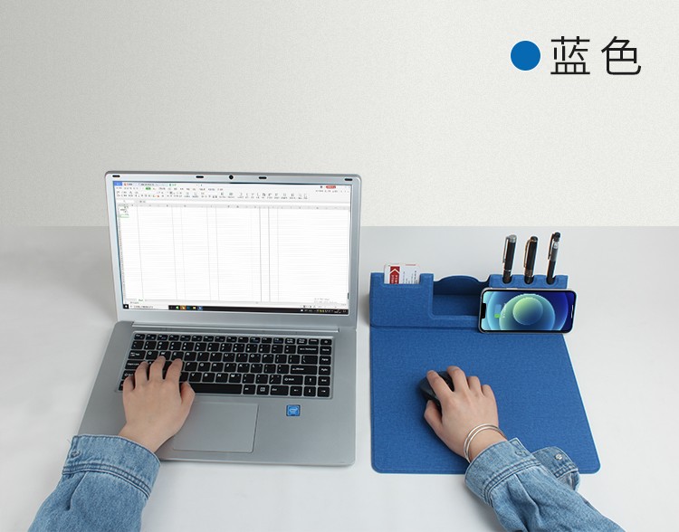 支架款無線充鼠標墊,手機一放,立即充電,給手機提供支架,布面,表面細膩、平整、操作穩定,底部淺絨,防滑穩固