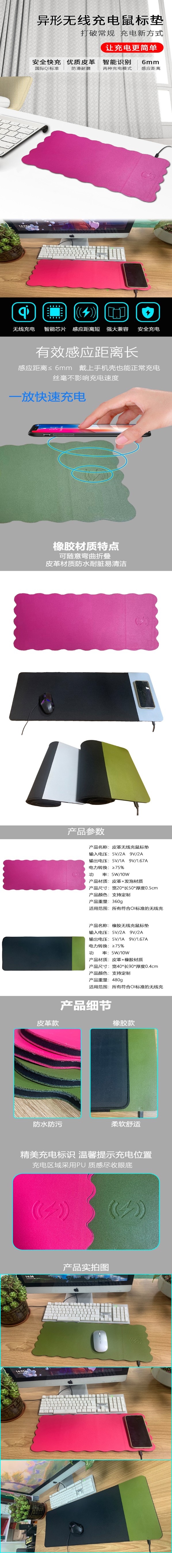 加大15W快充無線充電鼠標墊辦公PU皮廣告鼠標墊手機多功能鼠標墊