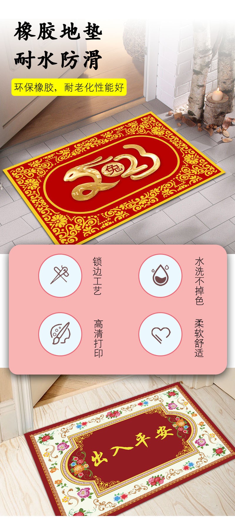 橡膠麂皮絨超大地墊防滑耐磨易清洗支持定制